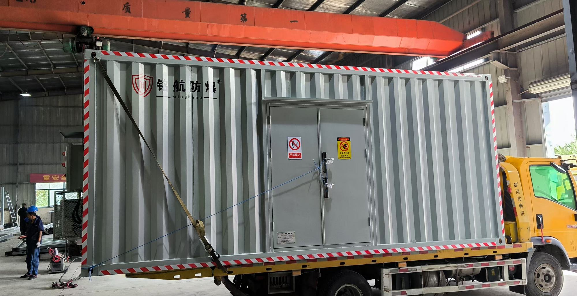 防爆集裝箱設有防爆配電箱 1 臺,內部元器件采用正泰品牌,防爆標志 EXdeIIBT4GB.滿足內部照明、風